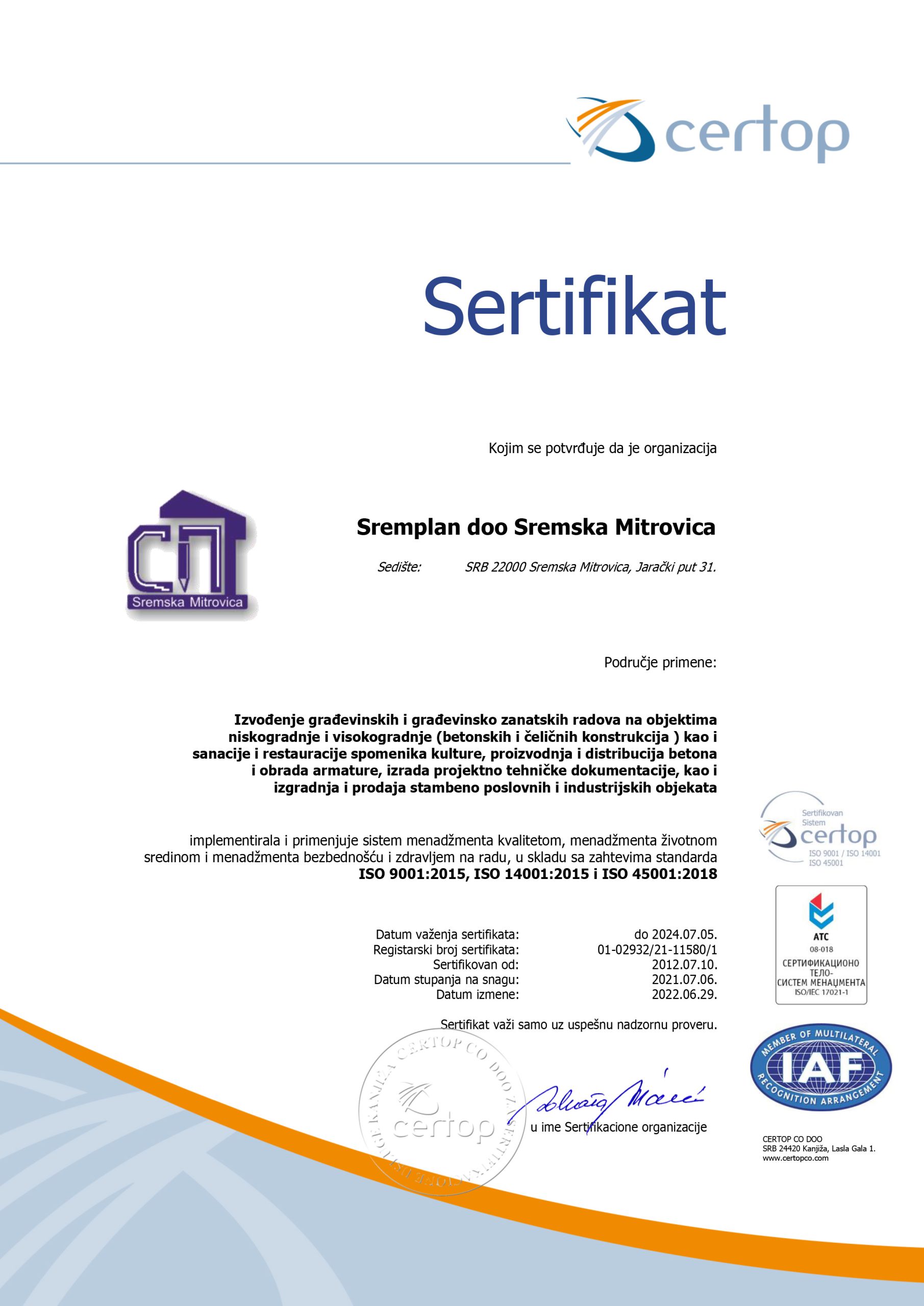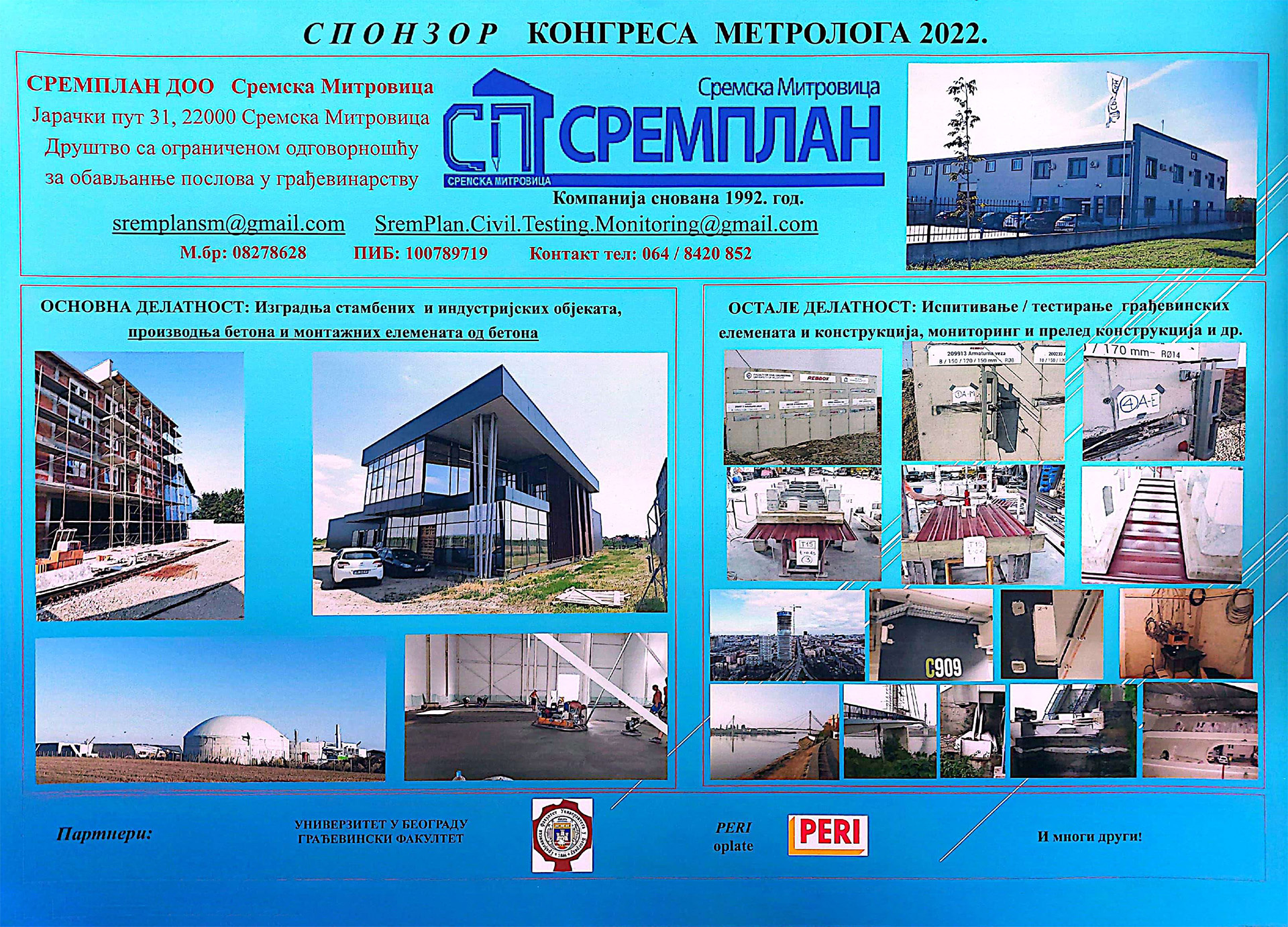 Компанија „СРЕМПЛАН” д.о.о. за сопствене потребе и потребе купаца, поседује производњу и продају бетона, која се налази у Сремској Митровици. Aутоматизованим постројењем за производњу бетона капацитета 60m³/h, савременом механизацијом за транспорт бетона (миксери носивости од 6 - 10m³/h) и две ауто пумпе за уградњу свежег бетона дохвата до 37m, у могућности су да на дневном нивоу реализују количину од 400m³ свежег бетона.